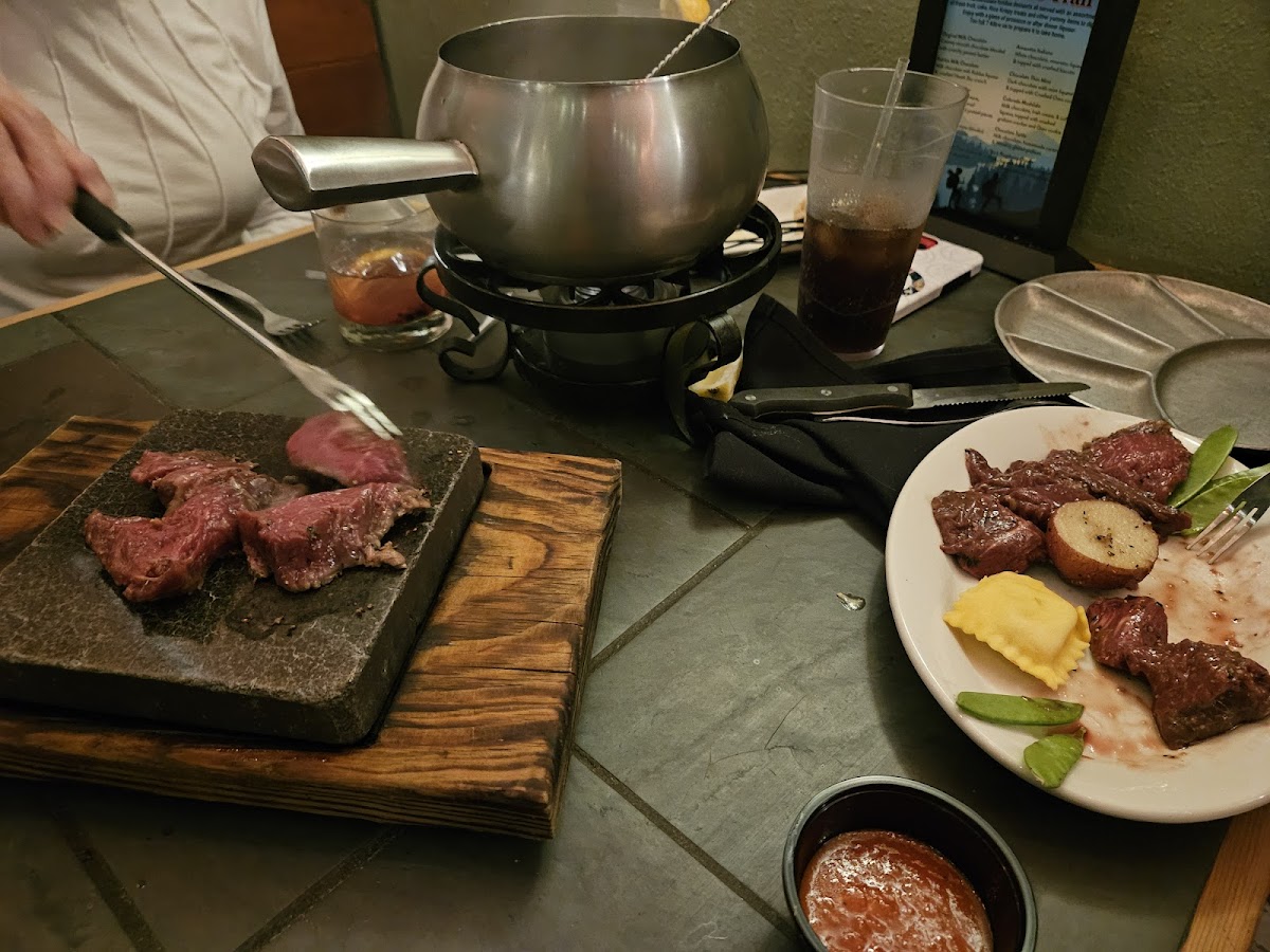 The menu is built around the idea of shared plates and hands-on dining. Instead of rushing through courses, you’re encouraged to settle in. Cheese fondue arrives bubbling, paired with cubes of bread, apples, and vegetables that soak up flavor beautifully. I watched a nearby table celebrating a birthday, and the server patiently explained how to pace the cheese so it wouldn’t scorch. That kind of guidance matters, especially since research from the National Restaurant Association shows experiential dining increases customer satisfaction by over 20 percent compared to traditional service models. This place clearly understands that principle.